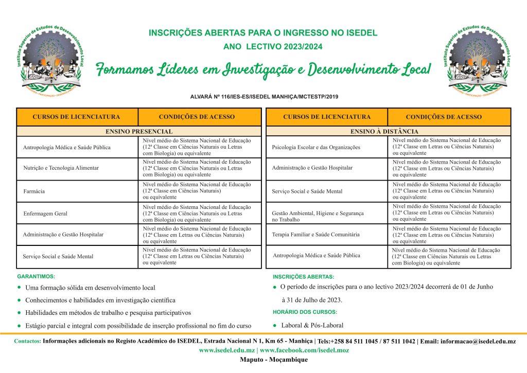 Inscrições abertas para o ano lectivo 2023/24